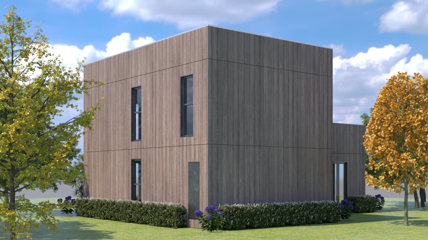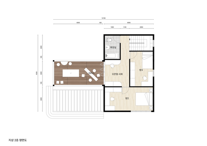 모듈러의 모던하면서 심플한 디자인, 자연스럽게 연장된 처마 밑에서 여유를 즐길 수 있다. 어떠한 대지에도 앞마당 혹은 뒷마당 공간을 유연하게 배치가 가능하다. 40평 미만 평수에 침실 3개와 내부정원이 있는 거실, 2층 프라이빗한 넓은 테라스를 통해 집안에서도 충분히 여유를 즐길 수 있도록 구성했다.